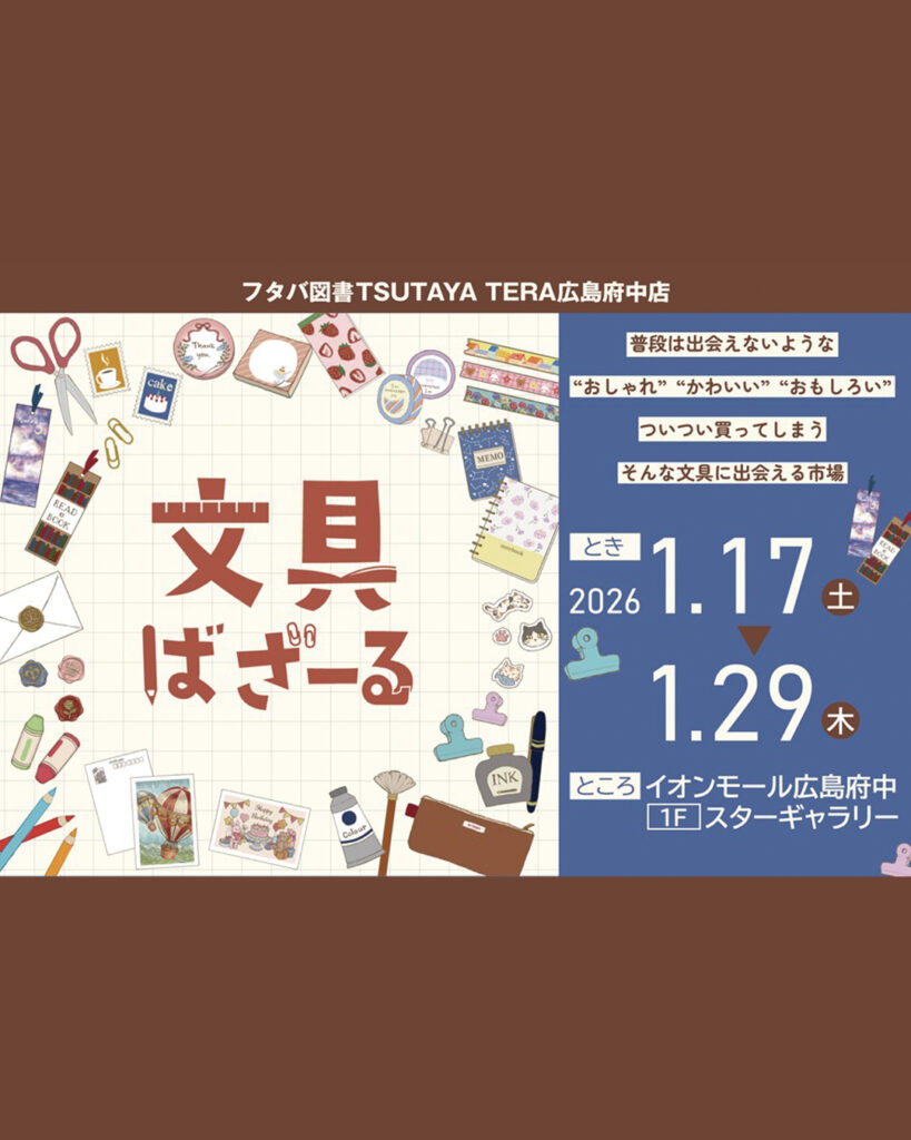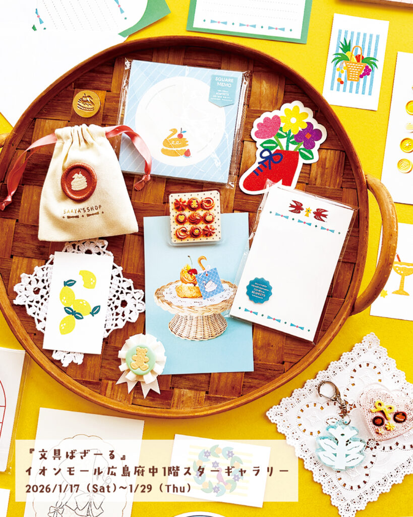 イオンモール広島府中1階スターギャラリーで1/17から開催の「文具ばざーる」に作家名の「SAAYA MASAKI」で参加いたします。